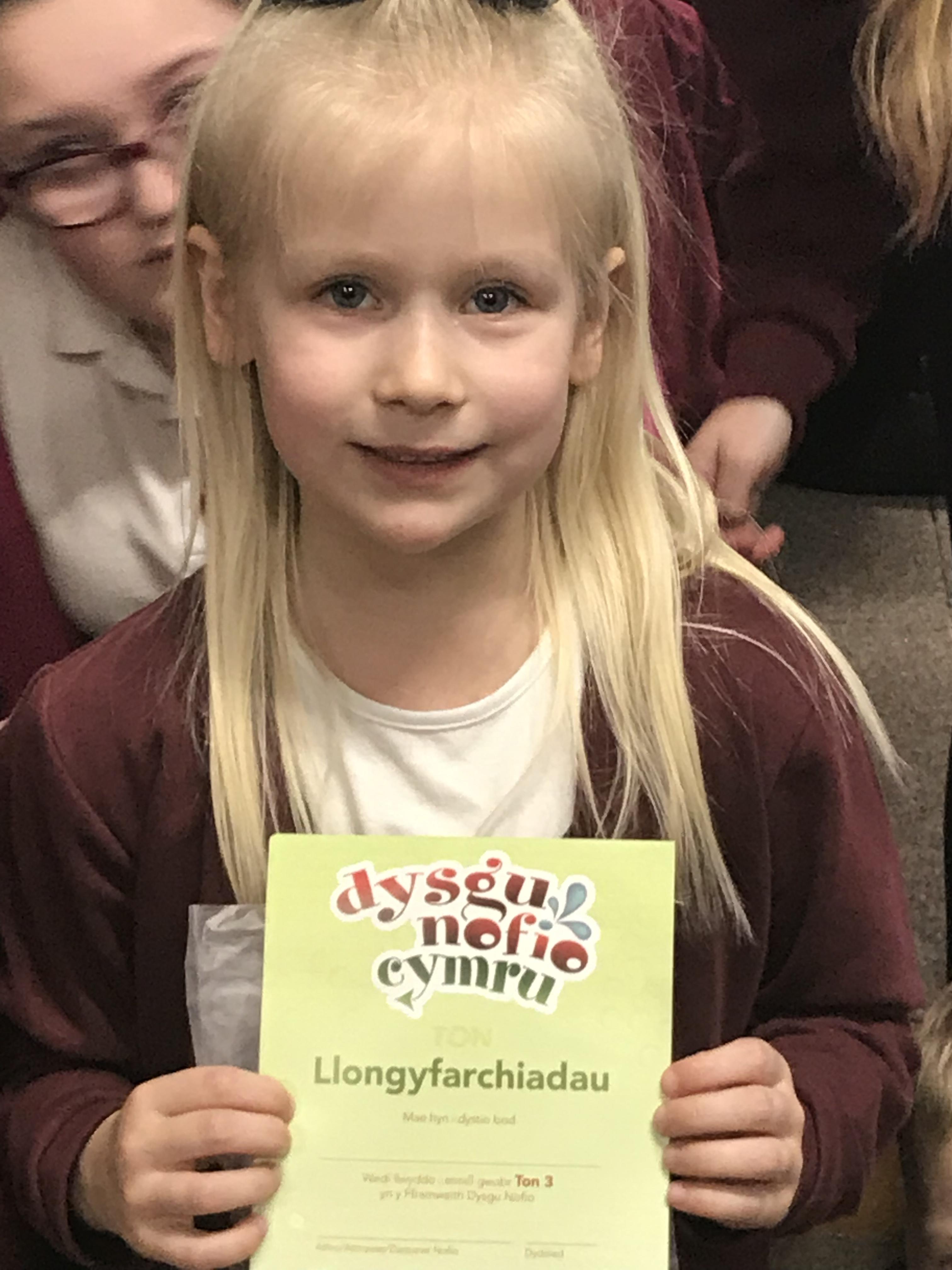 Doniau Dawnus: Dyma luniau o'r plant sydd wedi dod i ddangos eu tystysgrifau a thlysau yn y gwasanaeth yn yr ysgol ar ddydd Gwener. Rydyn wrth ein bodd yn clywed am eich llwyddiannau y tu allan i'r ysgol yn nofio, chwarae rygbi neu bel droed, yn gwneud drama, canu, chwarae offeryn a llawer o weithgareddau eraill.